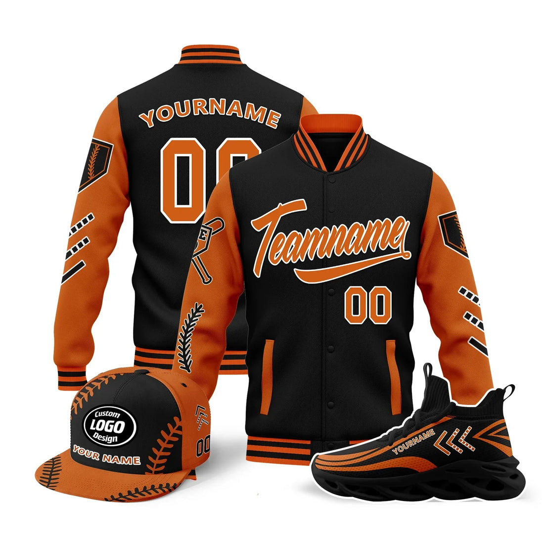 Custom Black Orange Jersey MaxSoul Shoes and Hat Combo Offer Personalized Combo ZH-D020234-3