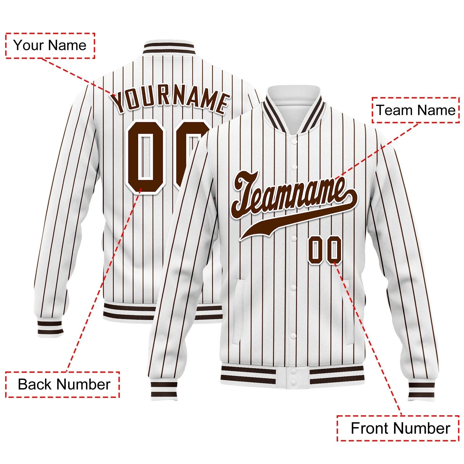 Custom Auburn White Stripe Fashion Jacket Bomber Full-Snap Varsity Letterman Personalized Jacket FZ005-D020219-24