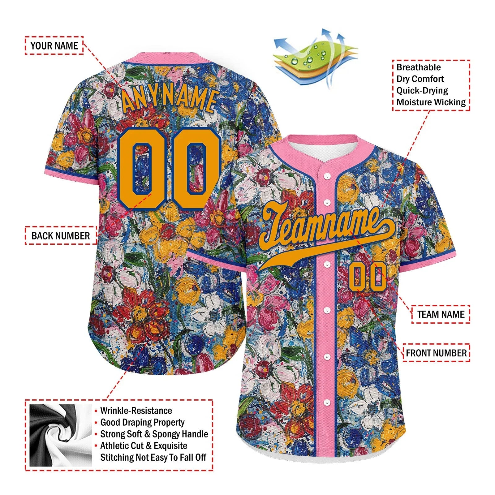 5.Customization: No minimum order quantity - personalize your jersey with your team logo, your name, and your favorite colors.