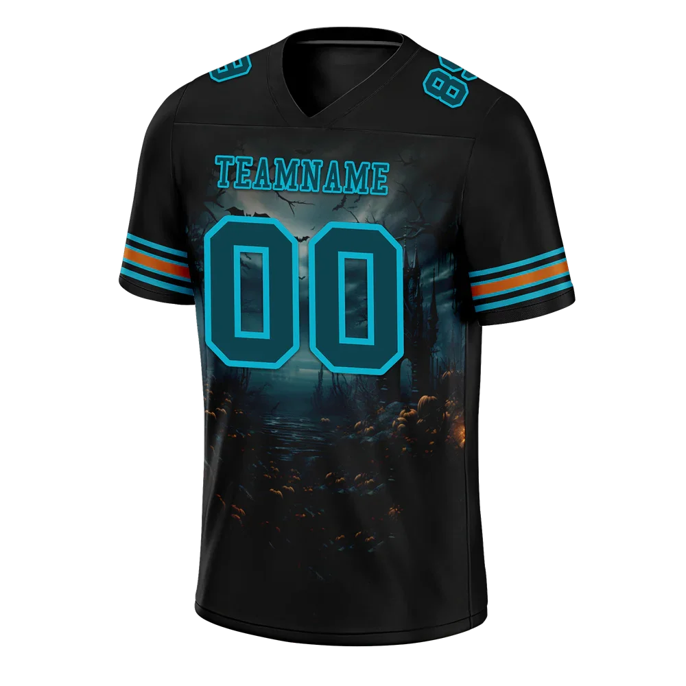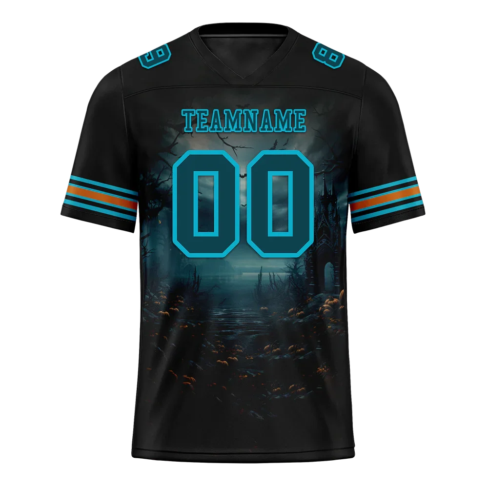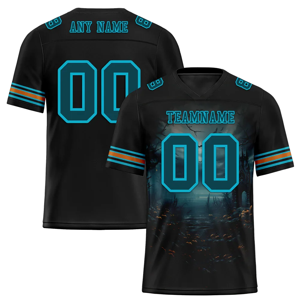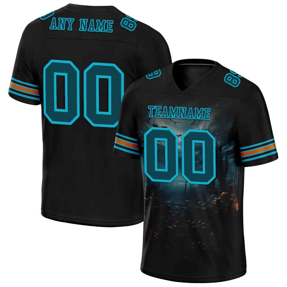 Custom Black Skull Fashion Aqua Personalized Authentic Football Jersey FBJ02-bc0fba9