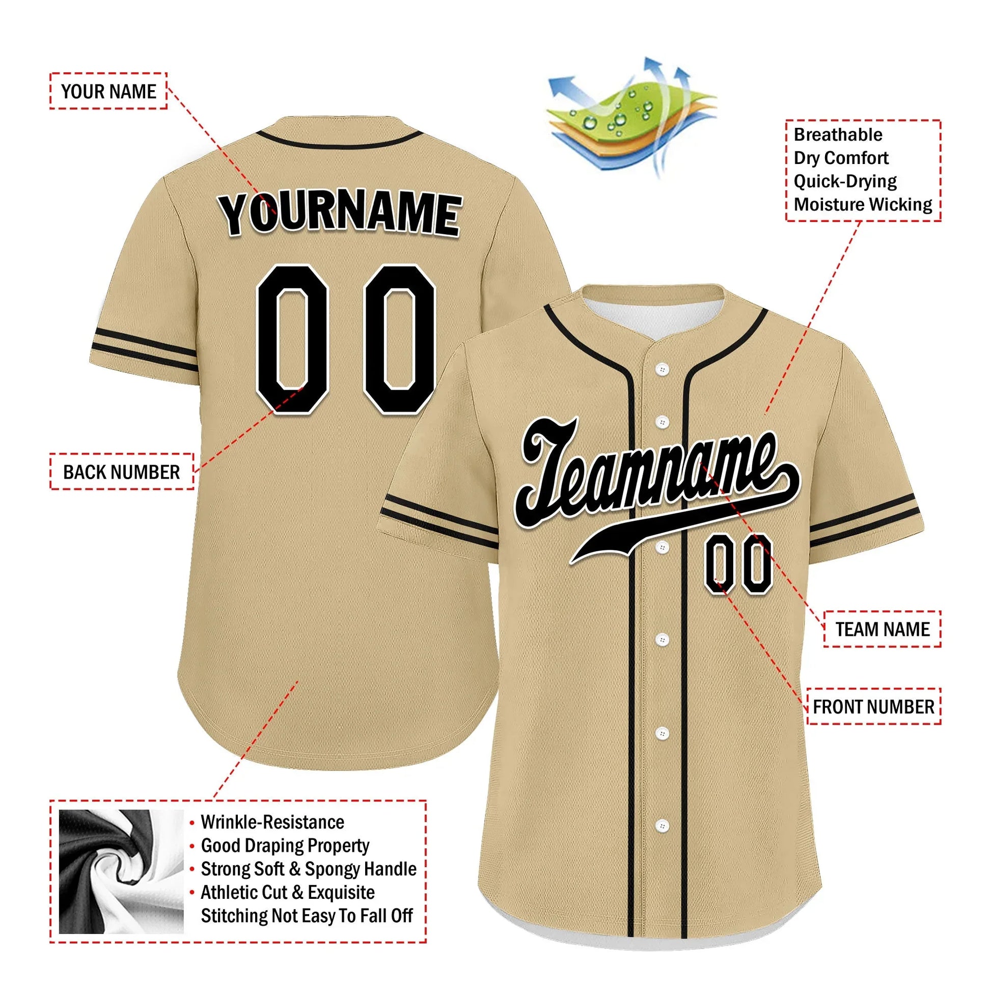 Experience the ultimate in comfort and performance with CoolCustomize custom jerseys, crafted from advanced COOLMAX material. Our COOLMAX jerseys are designed to keep you cool and dry by wicking moisture away from your skin, even during the most intense games. Stay fresh with breathable fabric that allows air to flow freely, preventing overheating and ensuring maximum comfort. Do not let sweat slow you down. COOLMAX material dries quickly, so you can focus on your performance. Made from lightweight yet durable fabric, our jerseys offer unparalleled freedom of movement and long-lasting wear. No minimum order quantity - personalize your jersey with your team logo, your name, and your favorite colors.