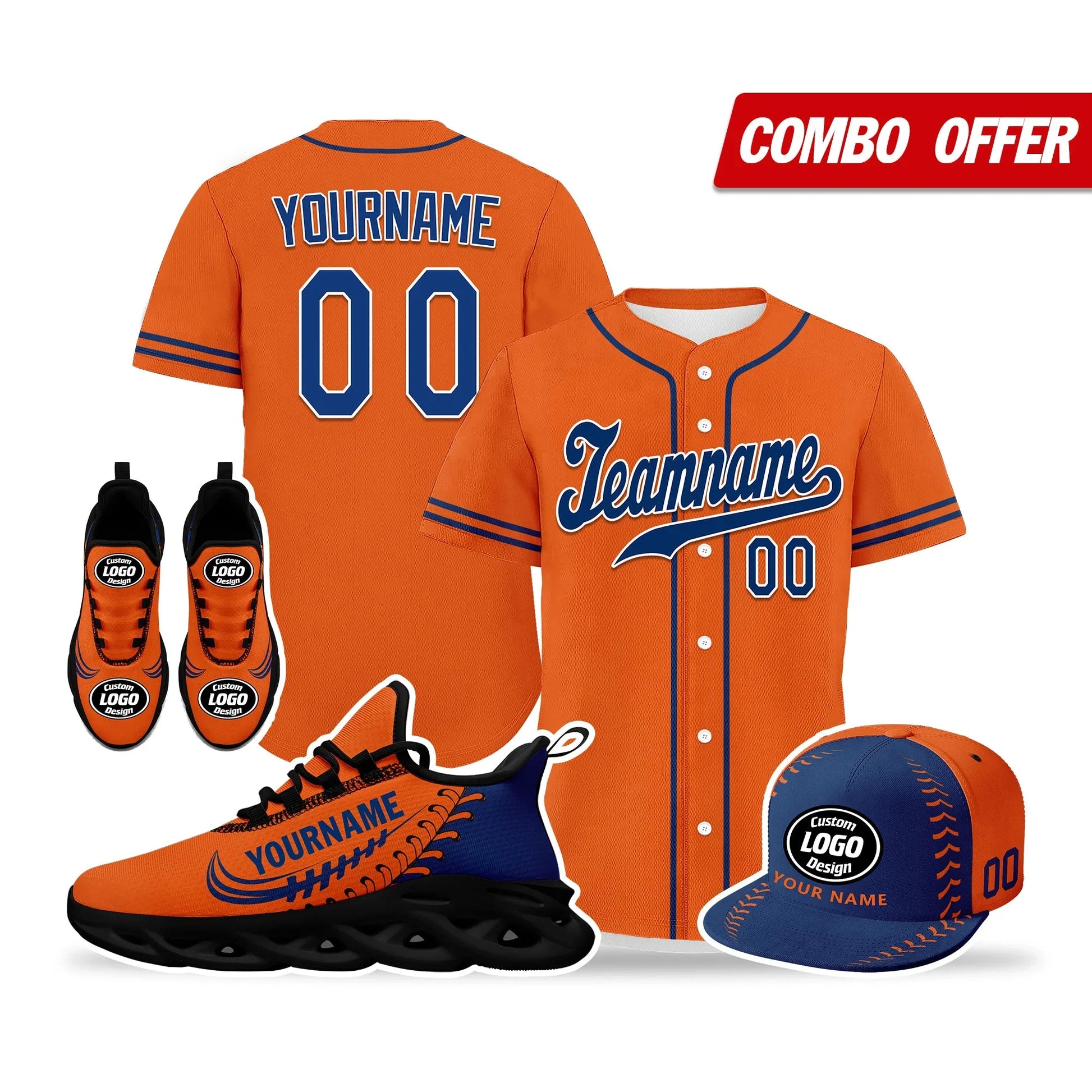 Elevate your fashion game with this exclusive combo deal featuring a custom hat, a pair of custom sneakers, and a custom jersey!