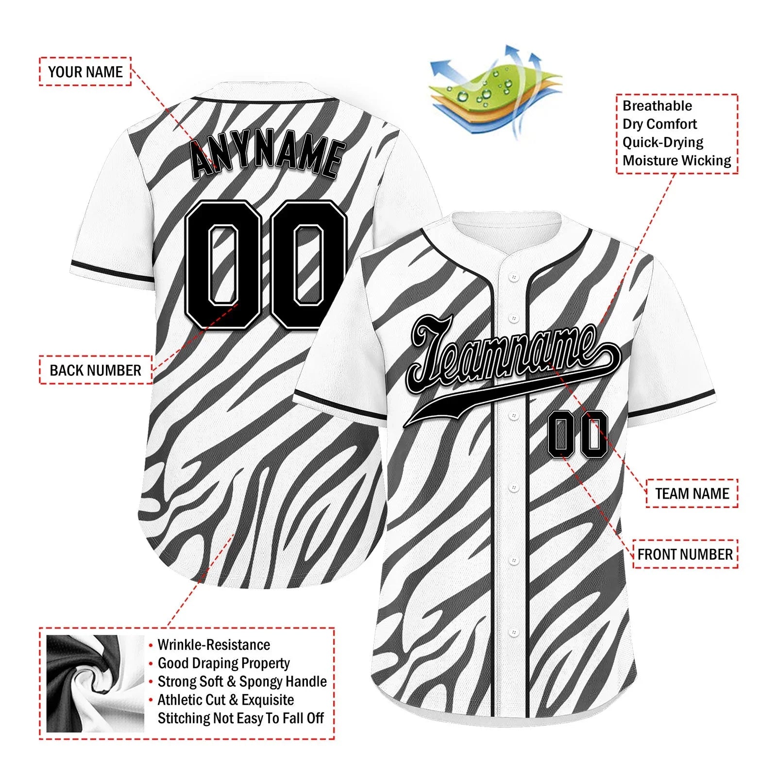 Custom White Black Zebra Pattern Personalized Authentic Baseball Jersey BSBJ01-D020201-2