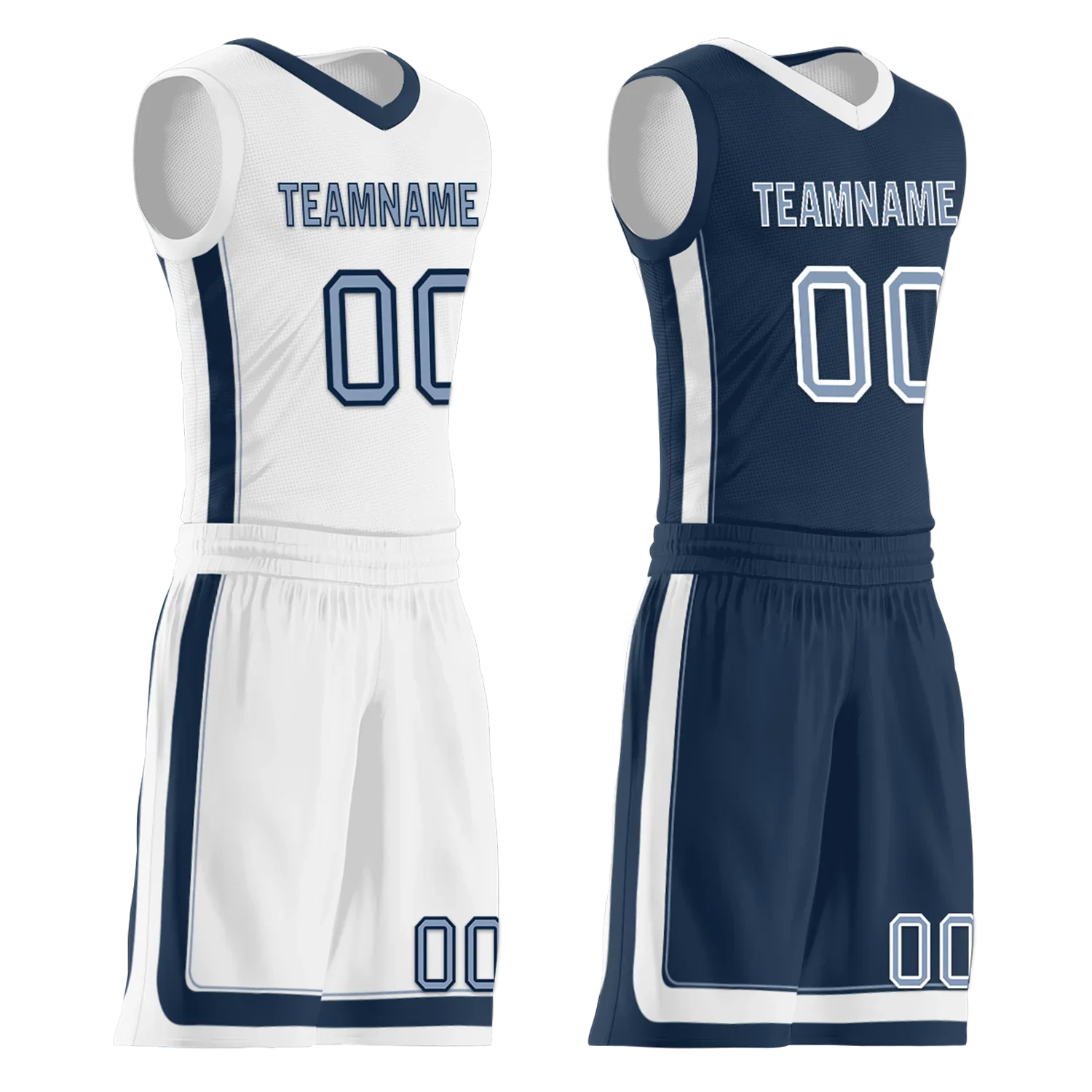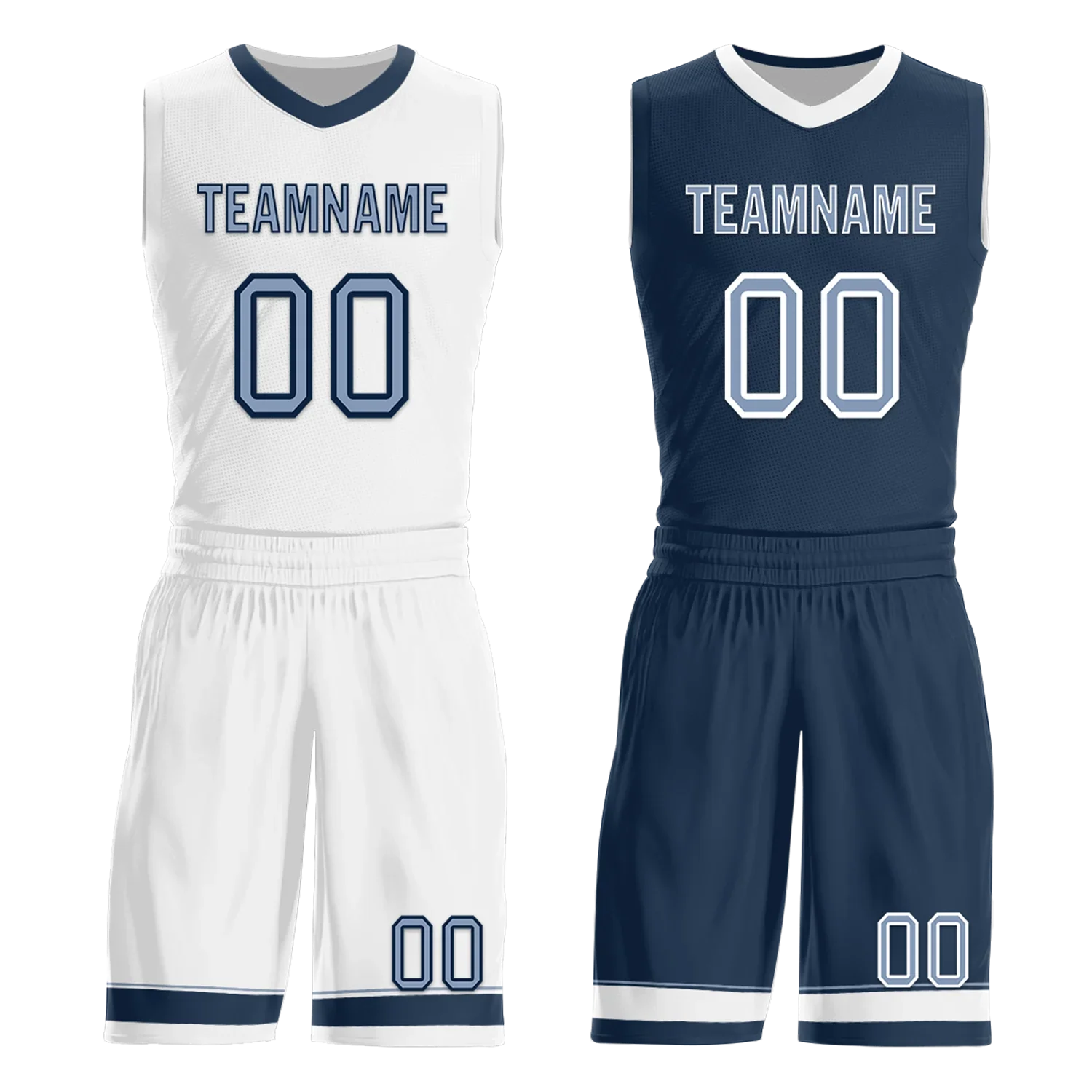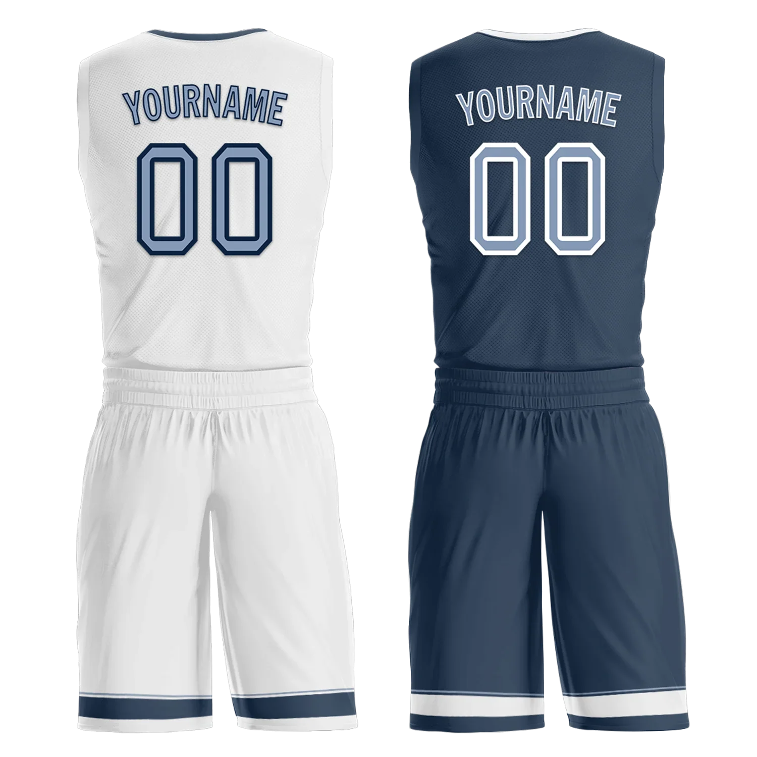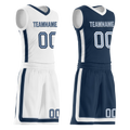 Custom White Blue Classic Style Reversible Basketball Uniform Personalized COOLMAX BBJR-D017043