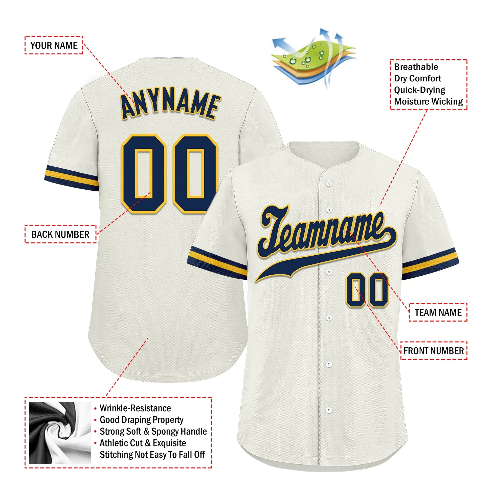Each CCJ tailored baseball jersey is meticulously personalized with the following features: