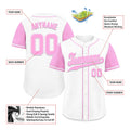 Custom White Pink Raglan Sleeves Personalized Authentic Baseball Jersey BSBJ01-D020200-15