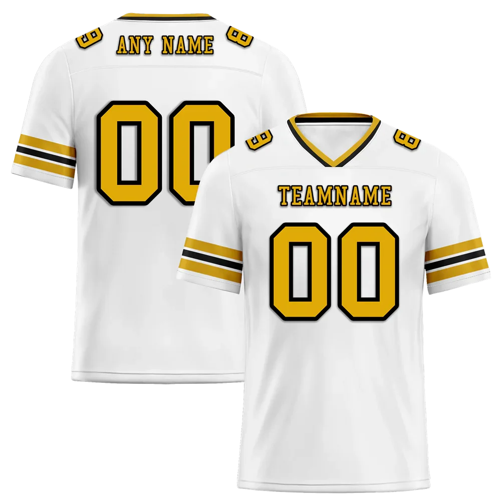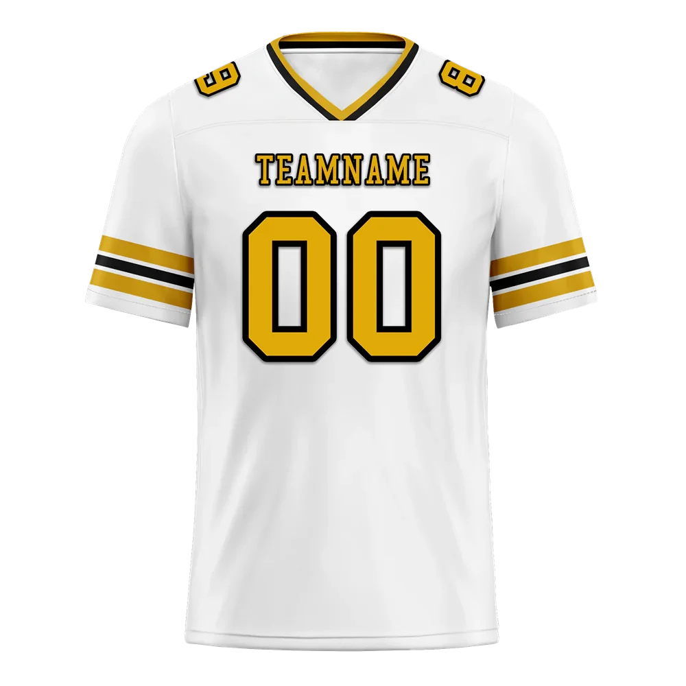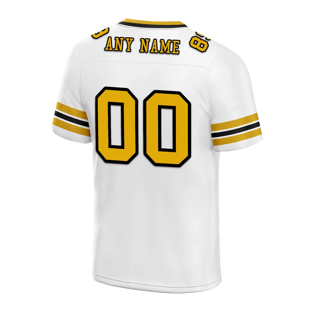 Custom White Sleeve Stripes Yellow Personalized Authentic Football Jersey FBJ02-bc0f0f7