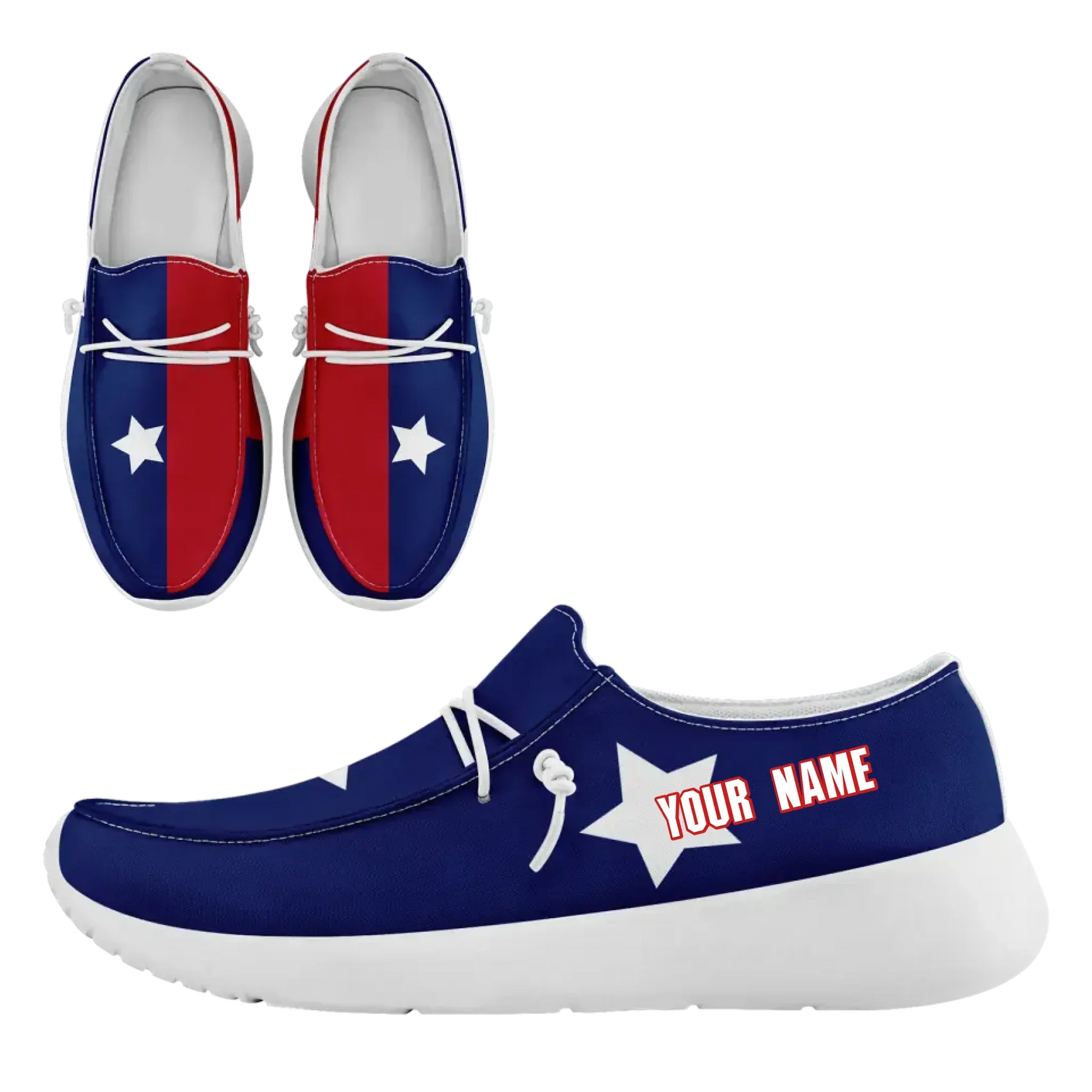 Show your patriotic pride with our Personalized America Flag Sneakers, the perfect blend of style, comfort, and national spirit. These custom-designed canvas slip-on shoes feature a bold American flag motif, making them ideal for any patriotic occasion or everyday wear. Crafted with durable yet breathable canvas, these loafers are not only eye-catching but also comfortable, allowing for all-day wear. The slip-on design offers convenience and a snug fit, while the cushioned insole ensures optimal support. Personalize them with your name, initials, or special message to make them uniquely yours. Whether you're celebrating the 4th of July, attending a sporting event, or simply looking to add a pop of patriotism to your wardrobe, these sneakers will help you stand out in style. Perfect as a gift for loved ones or a statement piece for yourself! Key Features: Customizable with your name or text Bold and vibrant American flag design Durable, breathable canvas material Slip-on design for easy wear Comfortable, cushioned insole for all-day support Available in a variety of sizes Step up your patriotic style with these one-of-a-kind sneakers!
